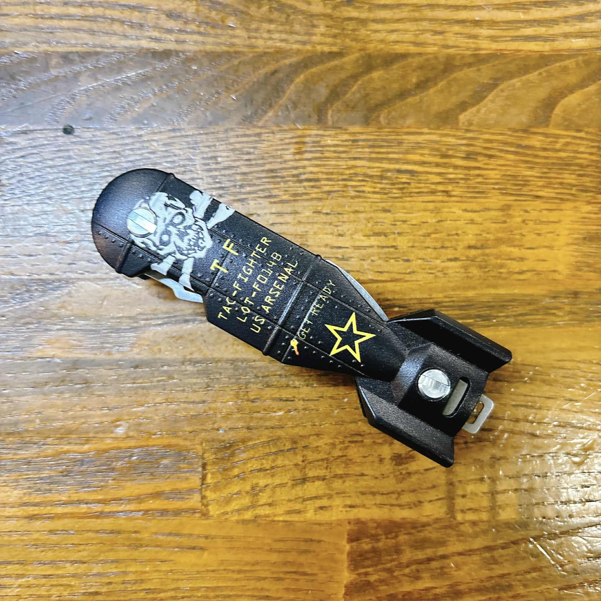 手のひらサイズのボディーは、戦時中に戦闘機や魚雷に描かれた軍人のお絵描き「ノーズアート」が目を引きます。
