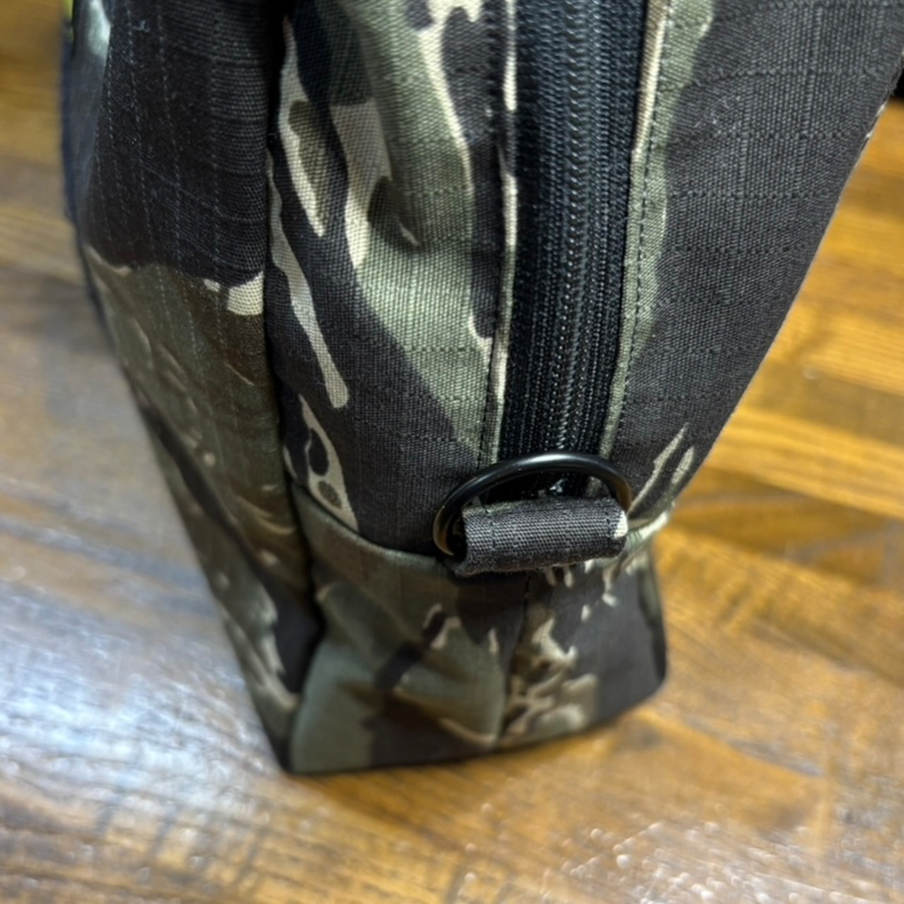 タテ20㎝×ヨコ25㎝×マチ7㎝ の小さめボストンバッグです。両サイドにDカンが付いているので、ショルダーバッグひもなどを付けるとショルダーバッグとしてもお使い頂けます(ミリすとらっぷ大 推奨)